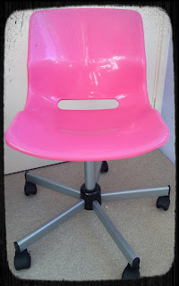 This is my office chair, it is the SNILLE swivel chair from Ikea. Can get a little hard on the bottom so I usually add a cushion . . . .
