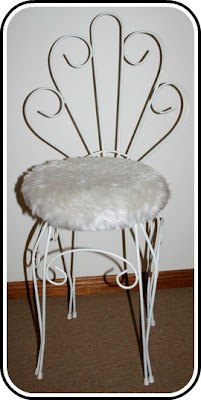 It was silver and rusting and had this horrible orange {I wouldn't even call it orange anymore} fluffy {or fluffy} chair cover!