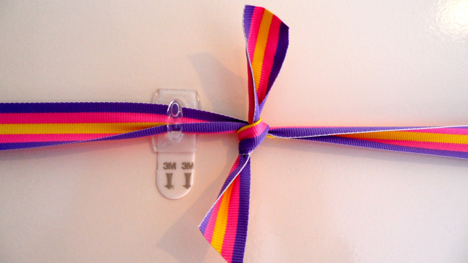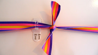 It is really quite easy, all you need is some ribbon {in colours of your choice} I got mine from Spotlight along with the mini pegs and some hooks.