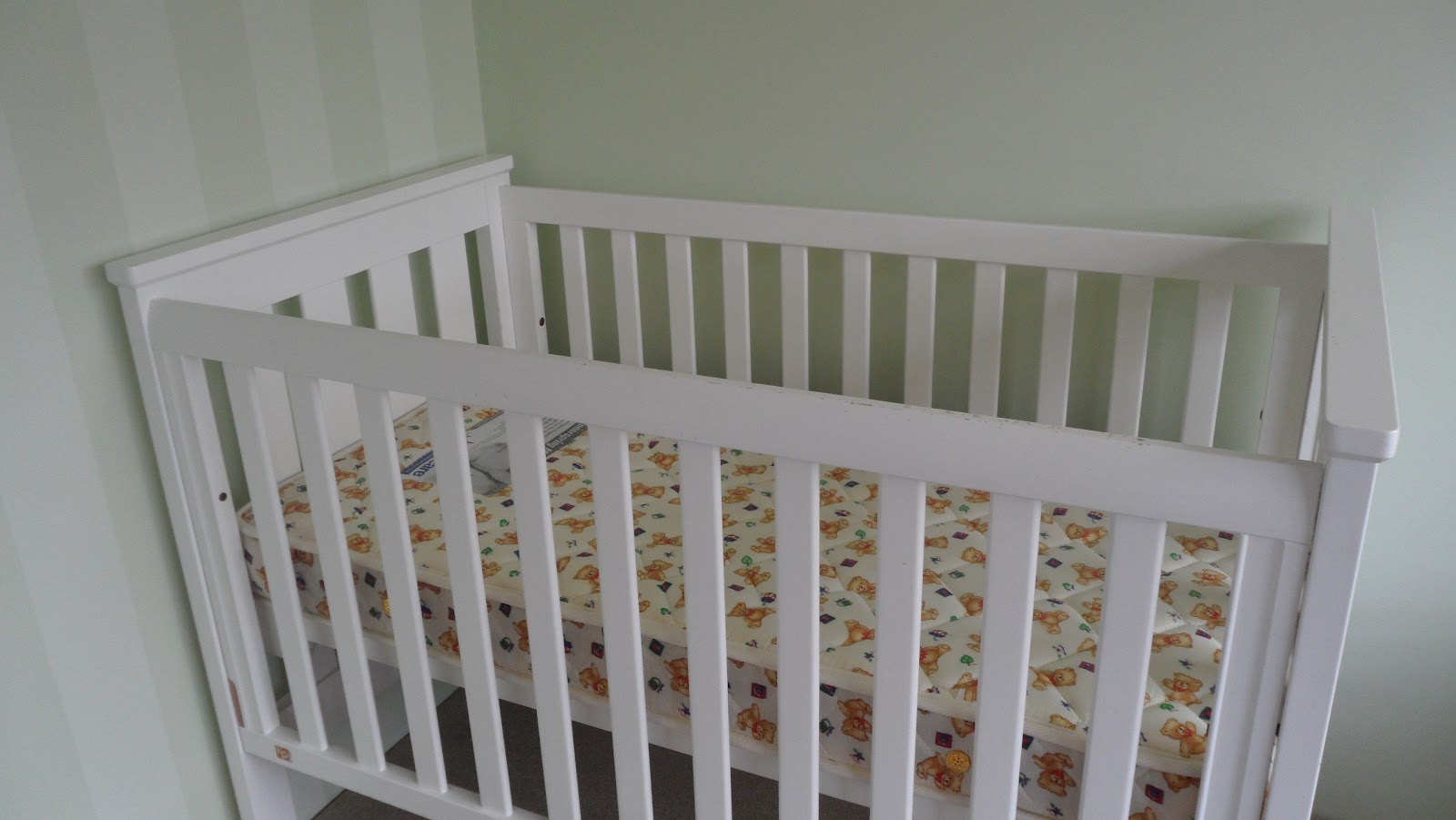 I wanted it to be white, but couldn't decide what to do with the drawers. I might still cover them in fabric, but will wait until I know if it is a boy or girl.