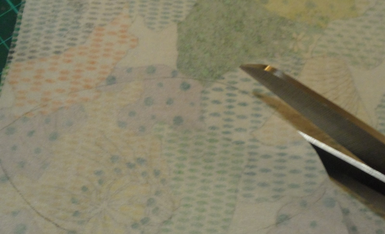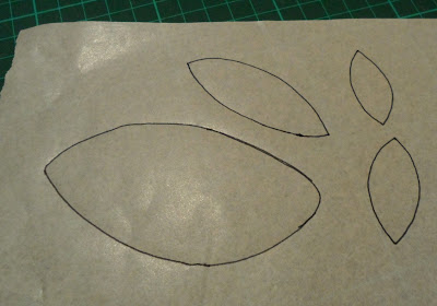 Use your template to trace leaves onto backing paper on fabric {remember to place your template on UP SIDE DOWN! so that when you cut it out the fabric will be the same as the leaf on the curtains}